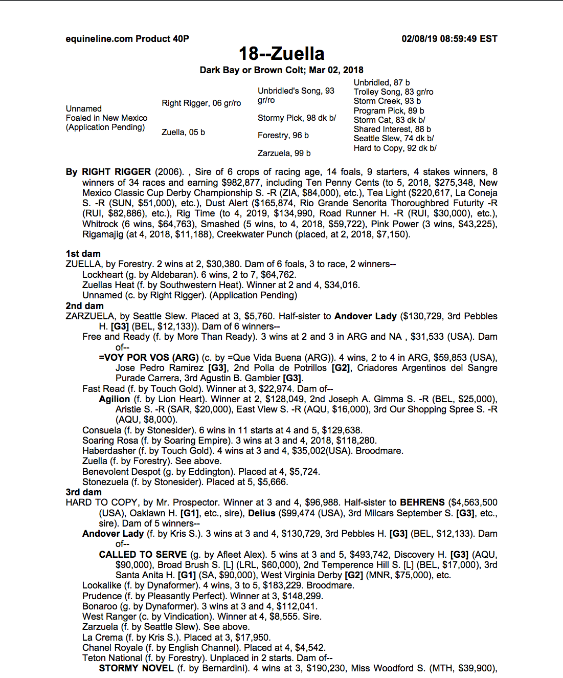 Medio hermano de 2 ganadores. De la familia de BEHRENS, $ 4,563,500