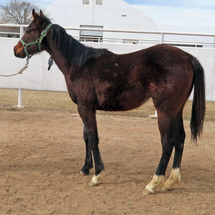 2018 Dark Bay o Brown Colt (Right Rigger x Zuella) Consignado por Jonathan O. Hafen, Receptor. Comuníquese con la cuidadora Susan Hunter, Huntercreek Farms, LLC - Nuevo México